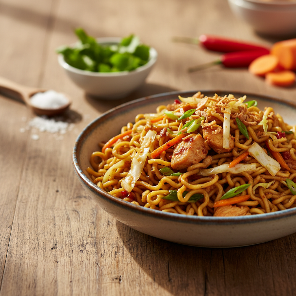 Wer kennt s nöd? De Maage knurrt, mer hät Luscht uf öbbis Exotisches, Würziges und glichziitig öbbis, wo eim es wohligs Gfühl git. Genau dänn isch Bami Goreng die perfekti Wahl. Das indonesische Gricht isch nöd nur i sinere Heimat en absolute Renner, sondern hät sich wältwiit i d Herze vo Genüsser gschliche. Es isch s Gschwüsterti vom bekannte Nasi Goreng, eifach mit Nüdeli statt mit Riis. S Schöne a dem Gricht isch, dass es unglaublich vielsiitig isch. Egal ob du Reschte im Kühlschrank muesch verwärte oder es festlichs asiatisches Znacht plane wotsch – Bami Goreng passt eifach immer. I dem Artikel zeigemer dir, wie du de Klassiker ganz eifach dihei i dinere eigne Chuchi chasch zaubere, ohni dass du defür en Profi-Wok-Koch muesch sii.