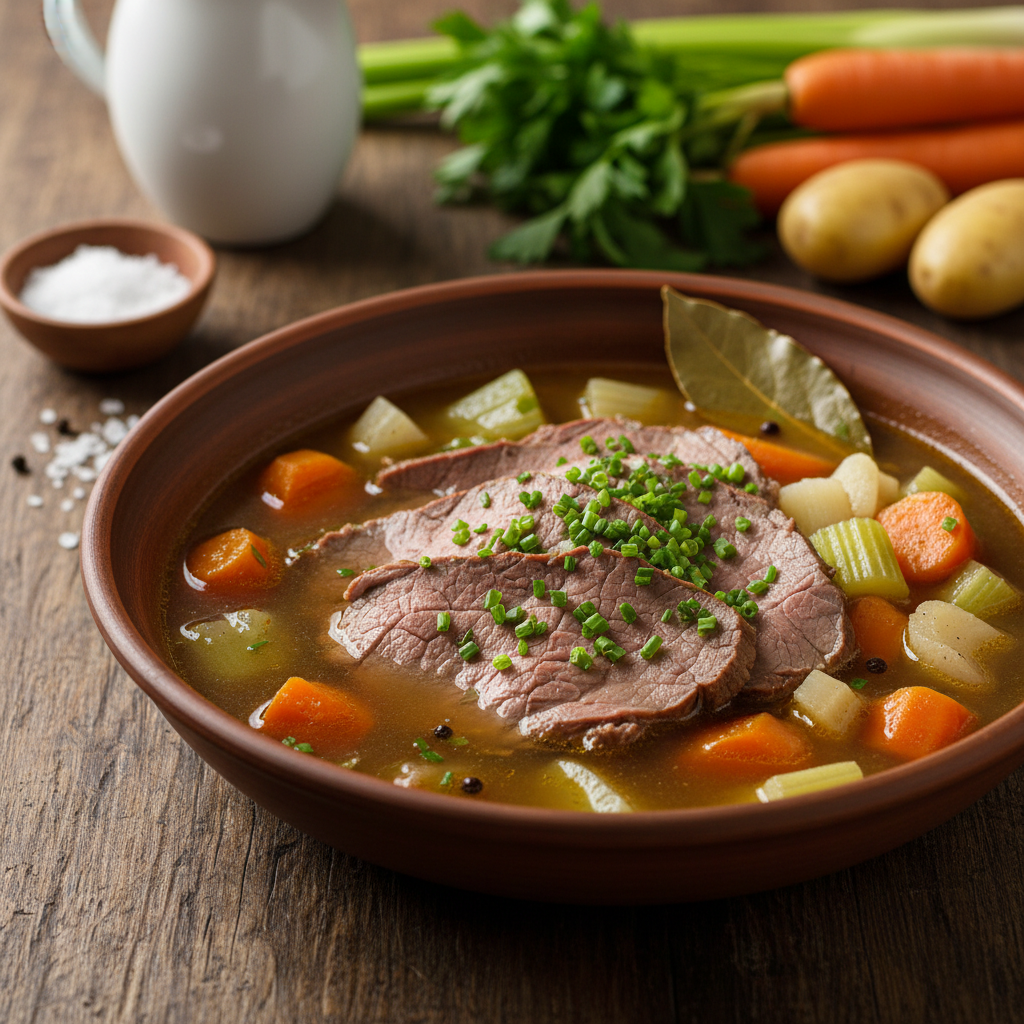 Es git wohl chum öbbis, wo so sehr nach Hei und Geborgenheit schmöckt, wie en rüüdige Sonntigsbrate, wo stundelang uf em Herts vor sich hi köcherlet. Wer a sini Chindheit zruggdenkt, mag sich sicher a de Duft erinnere, wo dur s ganze Huus zoge isch, wenn s Grossmami oder d Muetter am Sunntigmorga i de Chuchi gstande sind. De Tafelspitz isch debii de unagfochtni König vo de Siedfleisch-Gricht. Es isch nöd eifach nur es Stuck Fleisch im Wasser, nei, es isch e Philosophie für sich. D Landfraue i de Schwiiz wüssed das scho sit Generatione: Gueti Ding bruuched Wiili. I de hütige, schnällläbige Ziit vergisst mer oft, dass s Koche sälber scho en Gnuss sii chan. Mit däm Rezept, wo direkt us de Notizbüecher vo erfahrne Landfraue stammt, gschaffed mir e Brugg zwüsched Tradition und modärnem Gnuss. S Geheimnis lit nämli nöd i tüüre Gwürzmischige oder komplizierte Grät, sondern i de Liebi zum Detail, de Qualität vo de Zuetate und vor allem: i de Geduld.